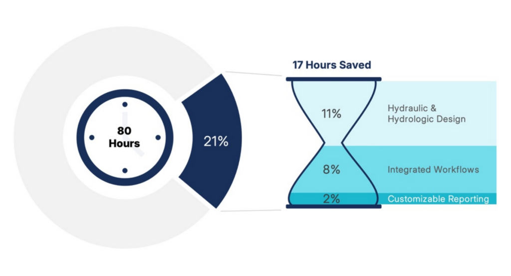 Based on customer interviews, Bluefield found that for a typical 80-hour drainage design project, engineers saved: