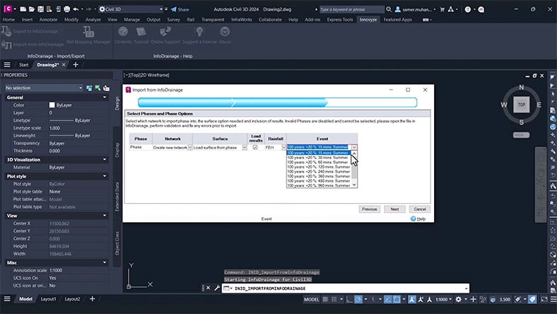 InfoDrainage + Civil 3D integration