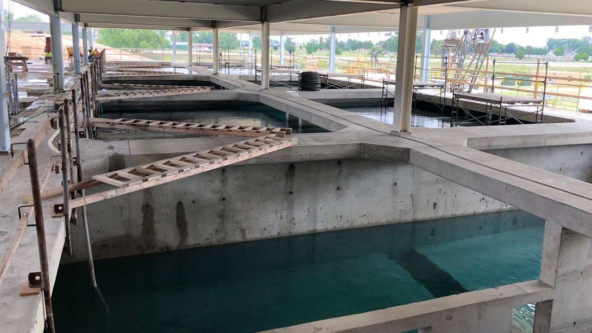Arcadis would design and oversee construction of two new water basins—adding to the six existing basins that treat 120 million gallons of water per day to make it safe to drink—and upgrade some of the water treatment units in the older part of the plant. “The plan was to add redundancy and capacity so it could better handle the algal toxins,” says Kurt Smith, project manager for Arcadis, to ensure that water customers have no lapse in supply if any of the basins needs repair. New basins 7 and 8, each with a capacity of 20 million gallons per day, would also allow the plant to conduct year-round maintenance.