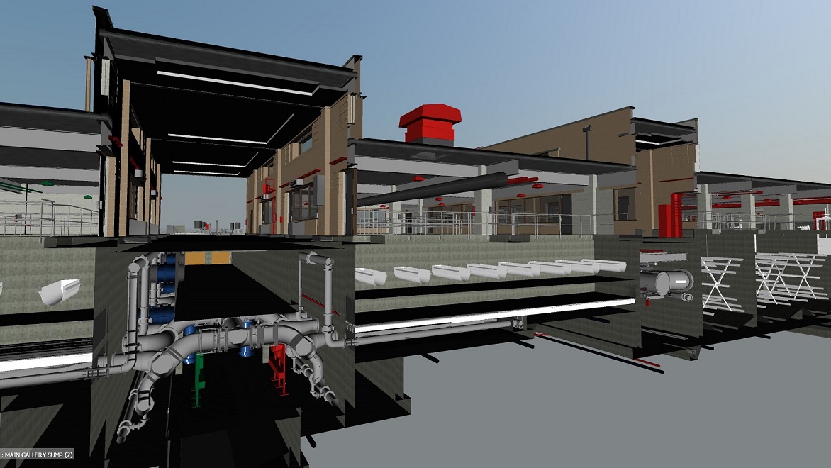 In 2016, Arcadis began the design phase of the Collins Park expansion, tackling the two new basins together with facility upgrades, including new piping to cascade raw water through an updated multistage treatment process to purify it for consumption. First, Arcadis needed an accurate model capturing the existing conditions of the plant. With data from a site survey and 3D scans, the team used Autodesk ReCap to convert reality-capture data into a point cloud and created a model in Autodesk Revit. Using Autodesk Infraworks, they added GIS data for the plant’s surfaces and utilities.