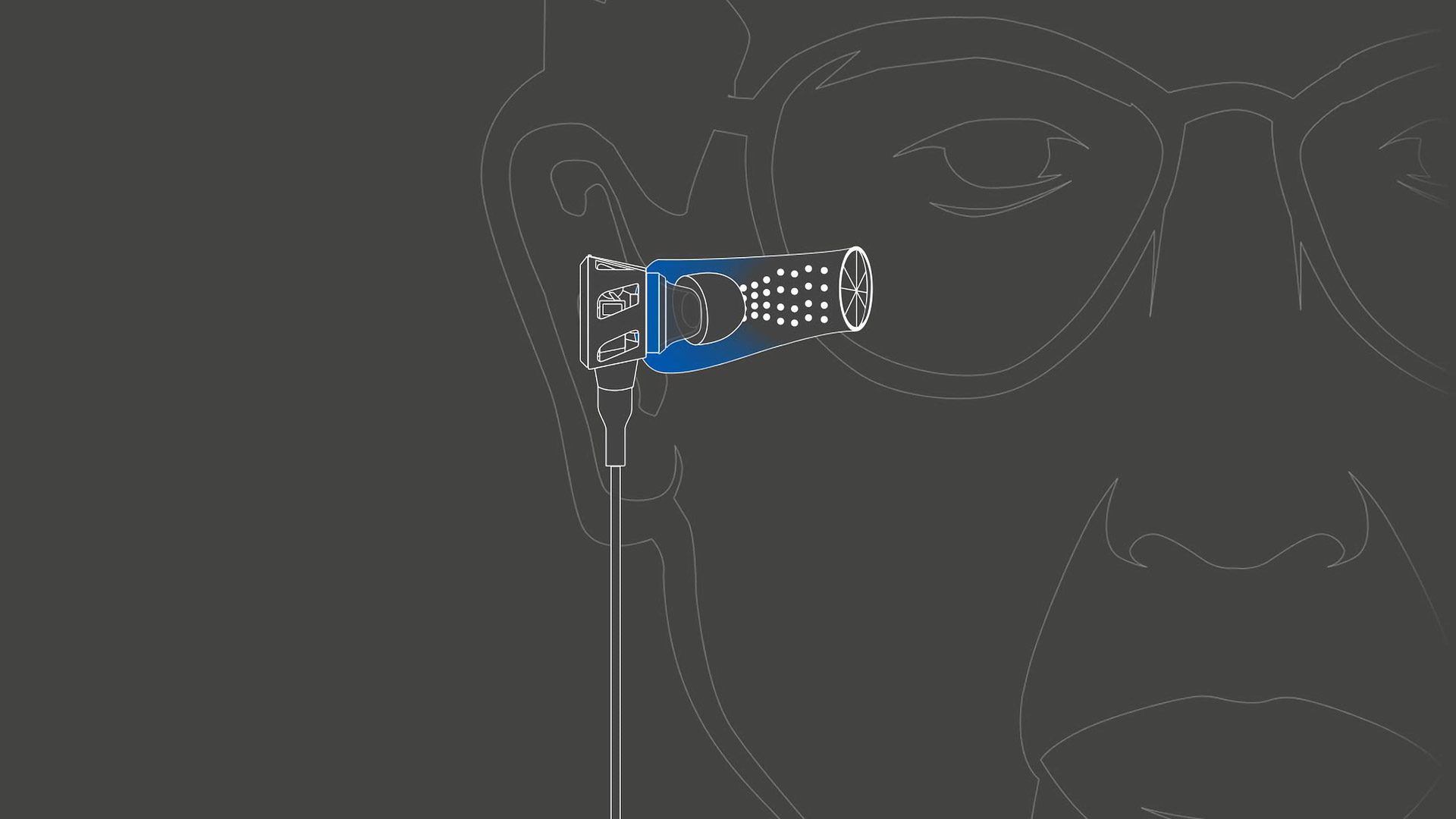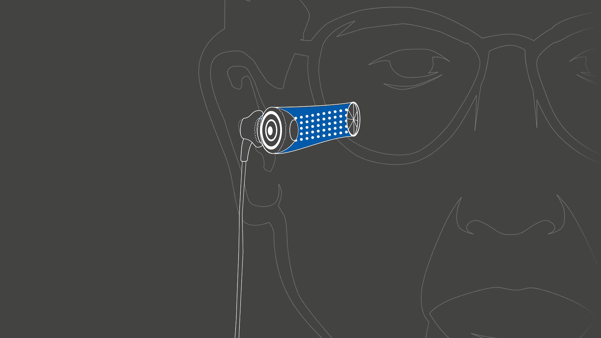 This discovery led Ambrose and his team to another eureka moment. Ambrose designed a solution that breaks the cycle of volume and hearing loss: a second, synthetic eardrum right inside the earbud. It works like this: