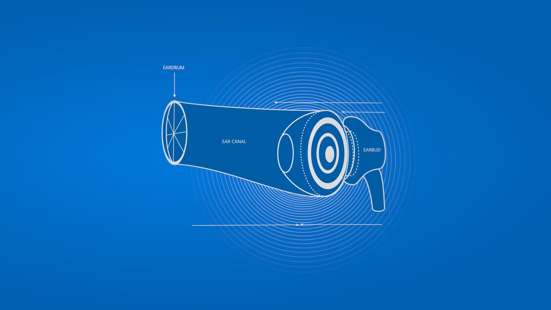 The synthetic eardrum embedded in the earbud absorbs the pneumatic pressure.