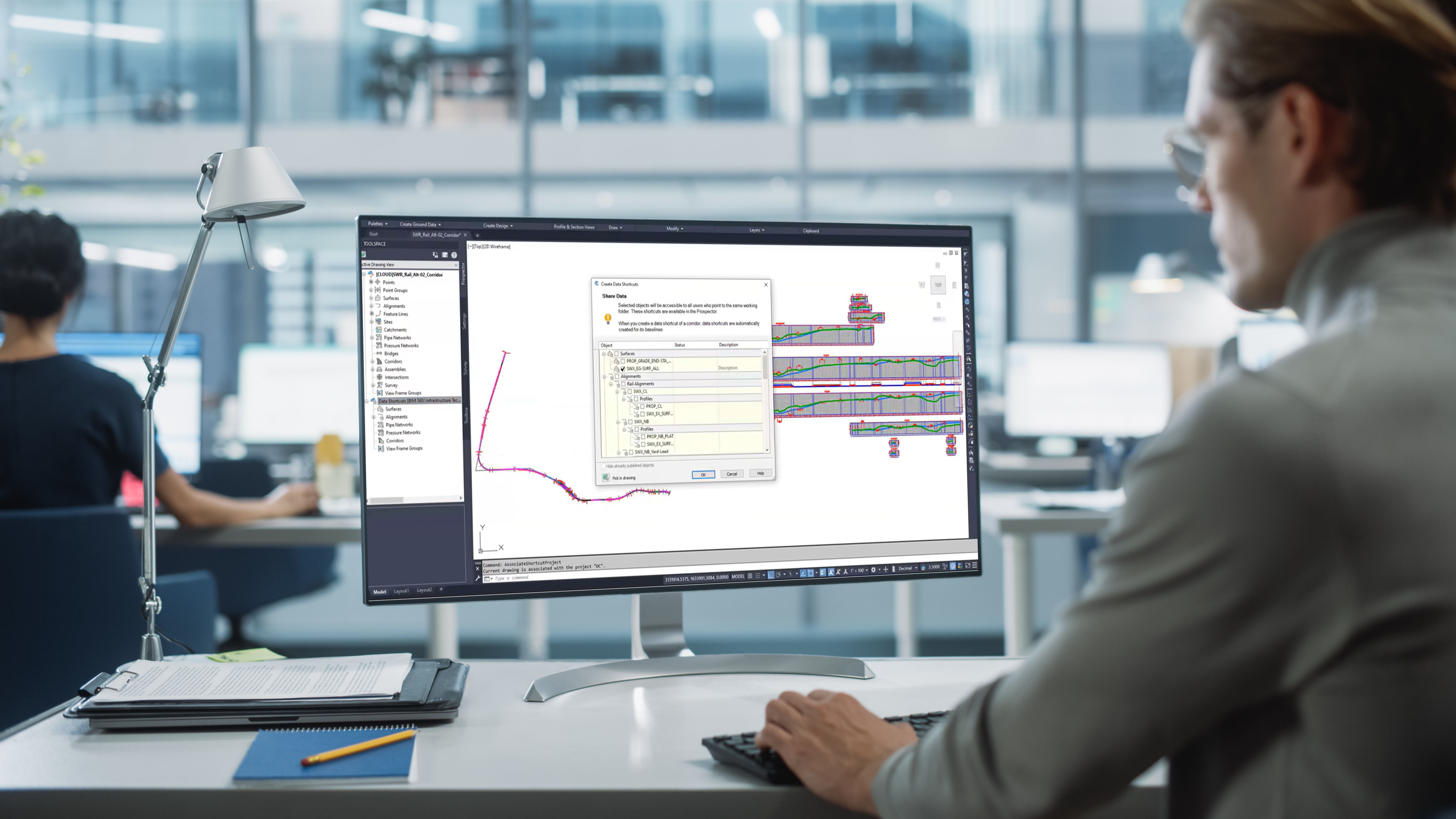 “As the [next] project went on, we had 22 full Civil 3D models, which produced about 1,200 data shortcuts, produced 900 drawings, and was worked on from five offices across four time zones over a five-month program,” Kinlough says. “So it worked really well.”
