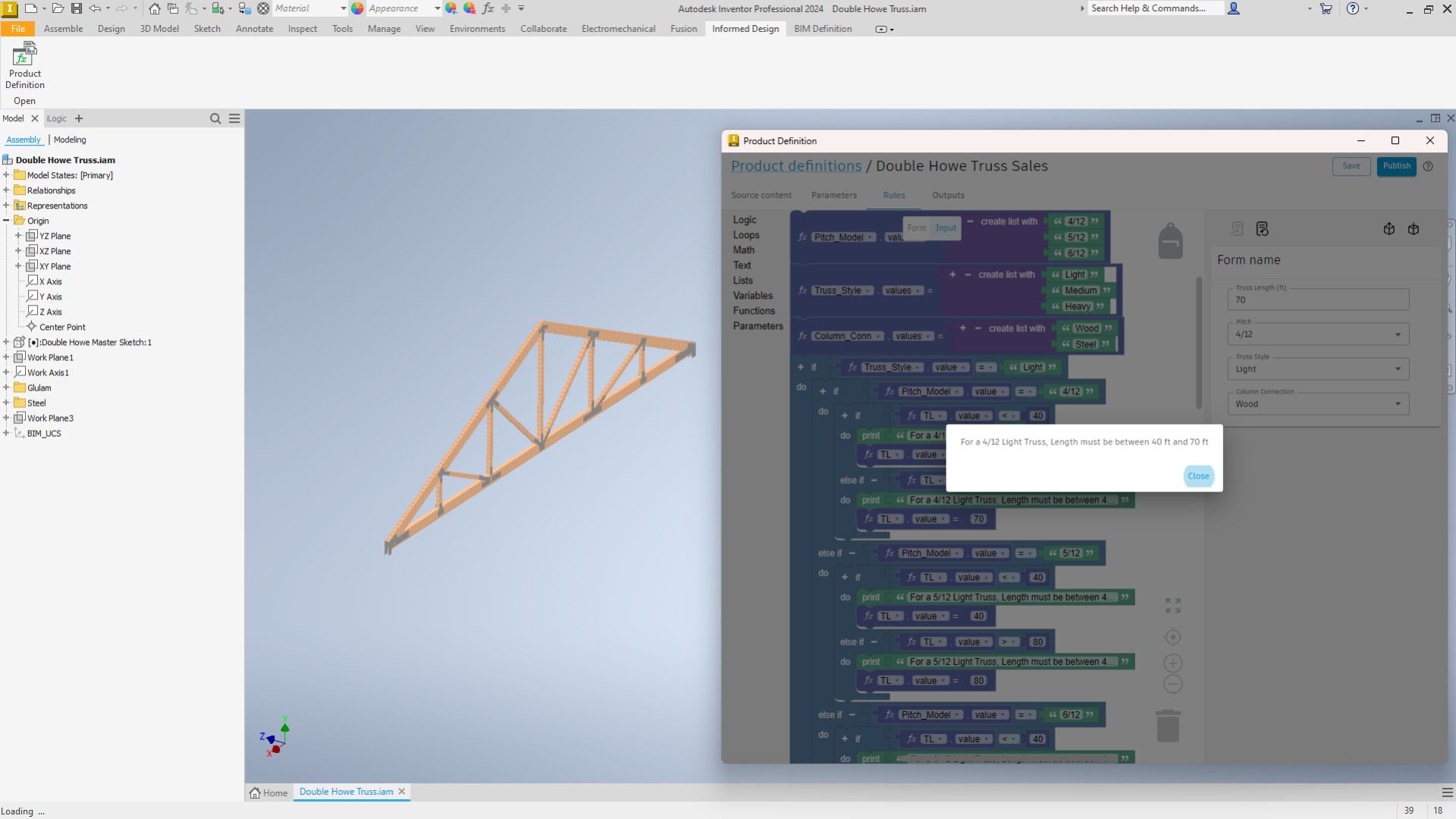 One standout application is their work with glulam trusses. By leveraging Informed Design, Cascadia has created a process that combines standardization with flexibility. Instead of offering a fixed set of predefined options, Cascadia produces standardized trusses that can be customized in dimensions and design features important to their customers—while still adhering to their manufacturing constraints. This approach allows them to meet unique project requirements efficiently, significantly reducing production time compared to fully custom trusses.