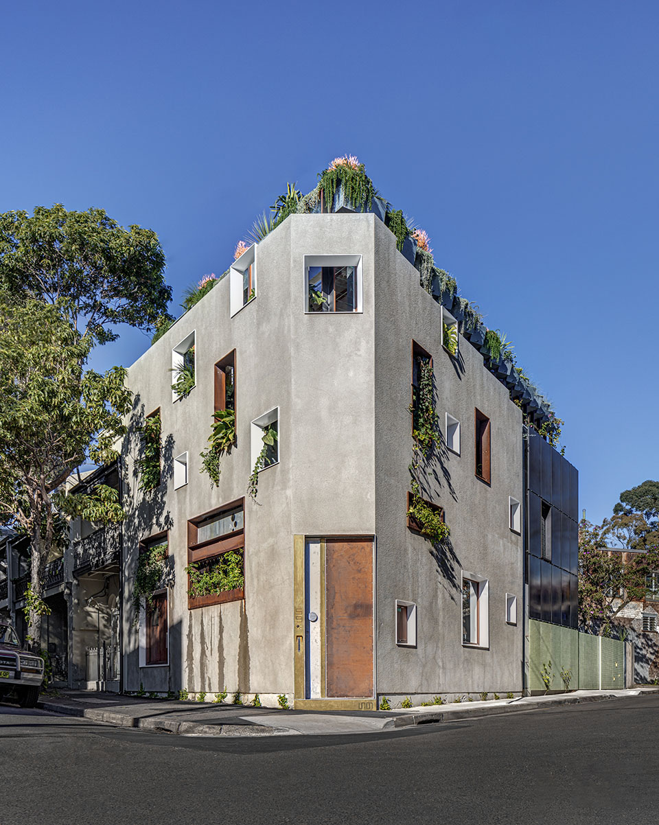 Located on a small triangular lot near the University of Sydney, Welcome to the Jungle House is teeming with flora, peeking from windows and overflowing from rooftop garden planters. Yet it’s also something more: its own ecosystem. A range of sustainable design features allow the house to remain comfortable even during hot Australian summers with little need for air conditioning. The renovation also embraces local heritage, re-imagining a protected Victorian-era “shop top” house (originally a ground-floor butcher shop and residence above).