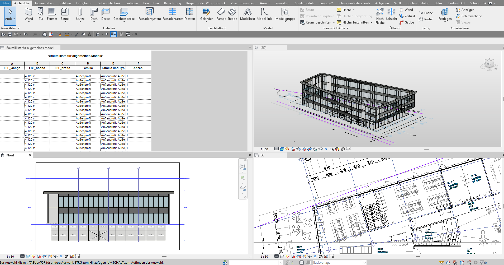 The right approach demands the right foundations. To achieve this, LBE followed a staged, proof-of-concept approach that allowed for appraisal and refinement before rolling it out more widely. This was Lindner Group’s first-ever engagement with Autodesk Consulting, which used innovative methods to define and prove the value of an integrated 3D planning and execution process. The process itself was facilitated by Autodesk tools such as ACC, as well as Revit and Inventor, from which data could be extracted and exchanged seamlessly.