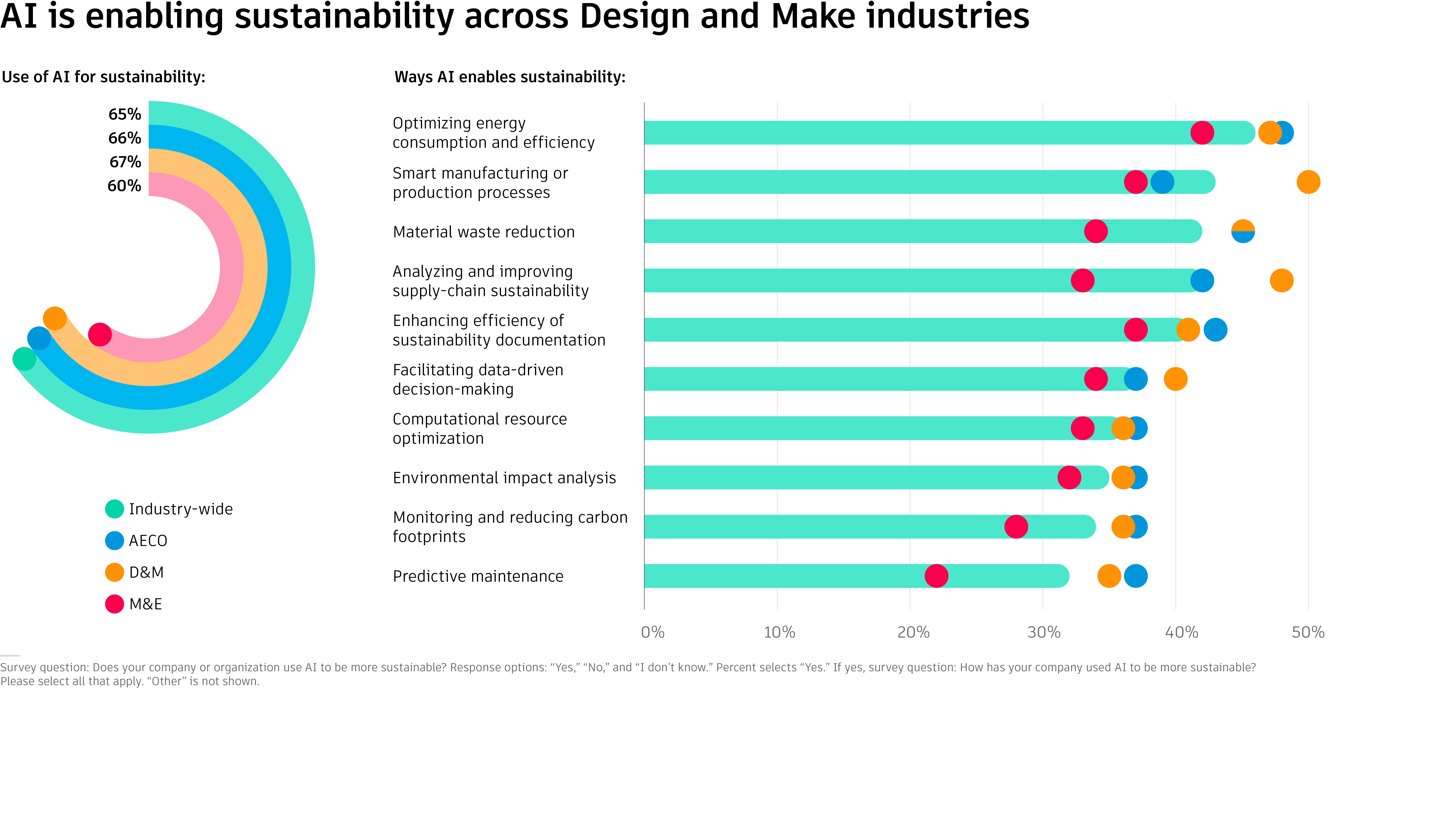 A significant theme across industries is that AI has moved beyond a buzzword; it’s a catalyst with tangible effects. Leaders in Design and Make industries are not just witnessing change in their industries—they are active participants, leveraging technology to increase collaboration, streamline processes, and drive innovation. This rapid progress highlights how industries are evolving, underscoring the impact of digital transformation on building a better, more interconnected, world.