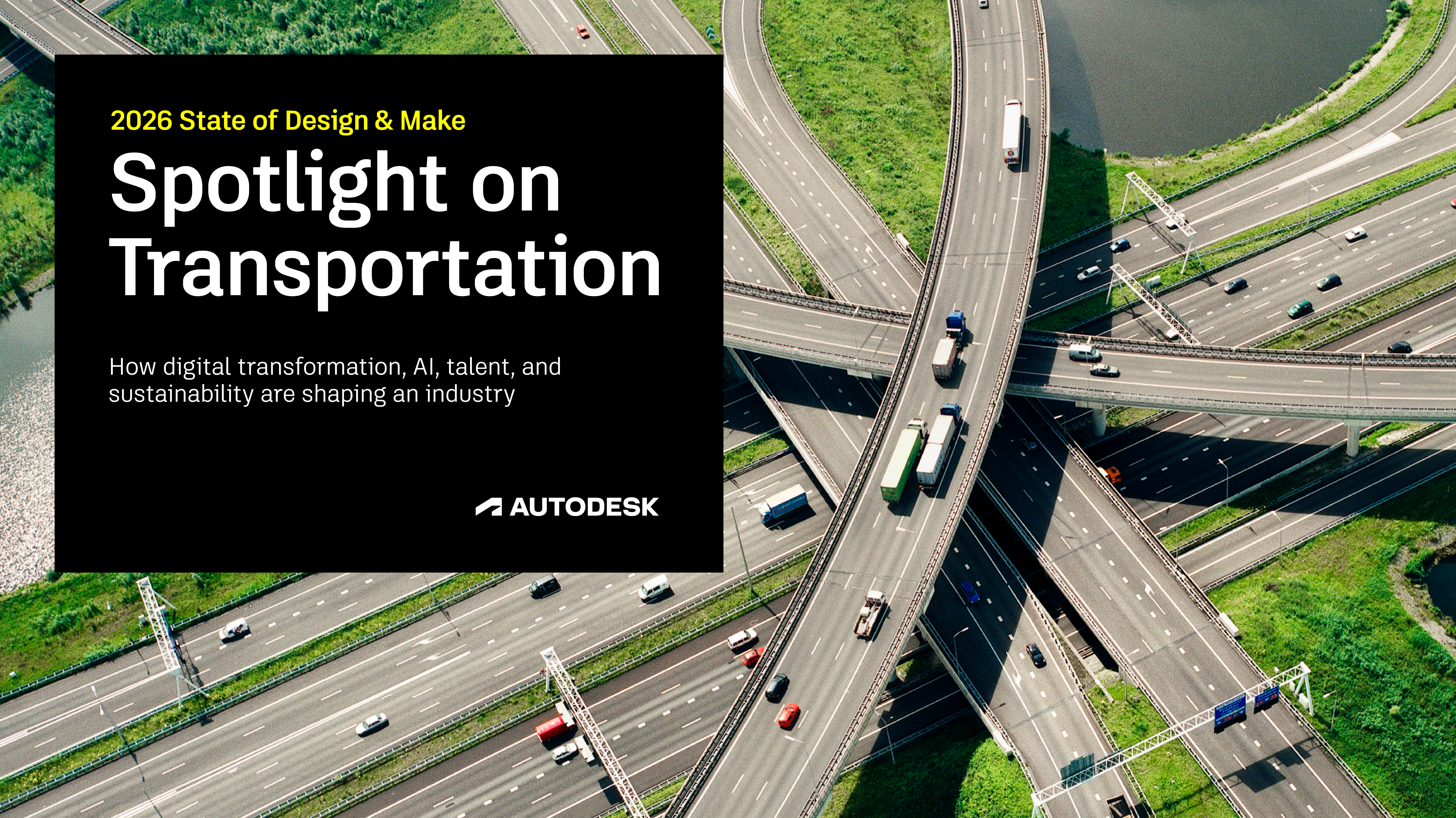For the State of Design & Make: Spotlight on Transportation report, Autodesk surveyed and interviewed 900 leaders and experts from 14 countries across the transportation industry for their insights about digital transformation, AI, talent, collaboration, and sustainability.