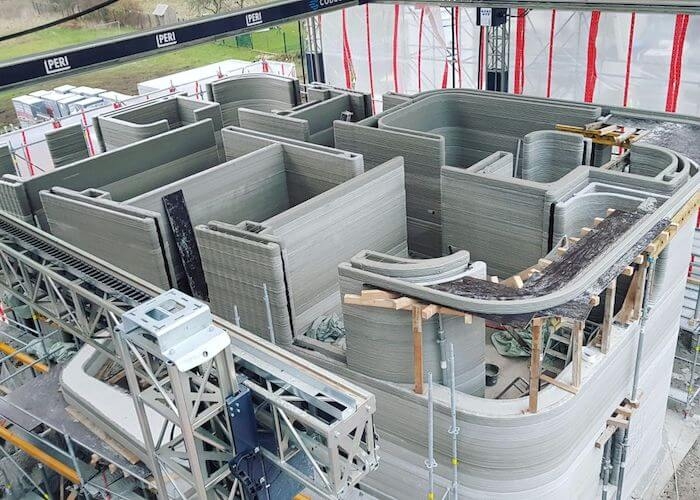 He considered pressed-earth block construction, polymer from recycled bottles, and hemp blocks. Some 19 months ago, Clarence McAllister, a principal of 3D Construction, approached Barlow with a proposal to use Peri’s additive process.