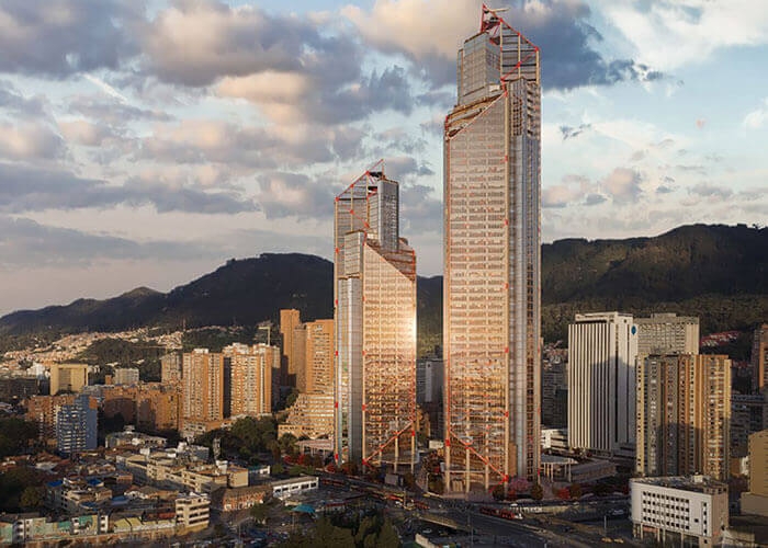 The project consists of two towers, one of which will be the tallest in Colombia, and will provide office space, a hotel, residences, public services, and retail.