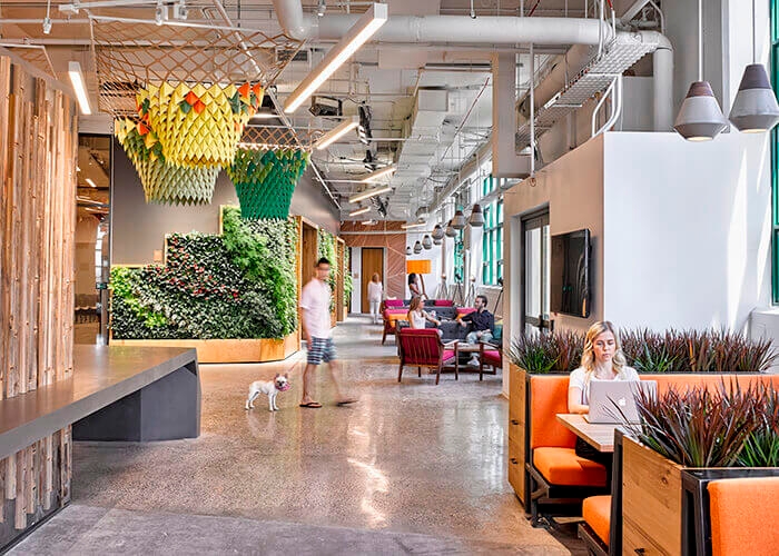 Biophilia, or humans’ innate love of nature, is one compelling reason to make this leap. For Etsy’s 198,635-square-foot headquarters in Brooklyn, NY, biophilic design was a key part of the strategy by architecture and design firm Gensler for promoting employee happiness, health, and productivity. The team filled the space with greenery, commissioned plant-themed artwork, and minimized the use of straight walls and right angles to echo the irregularity found in the wild.