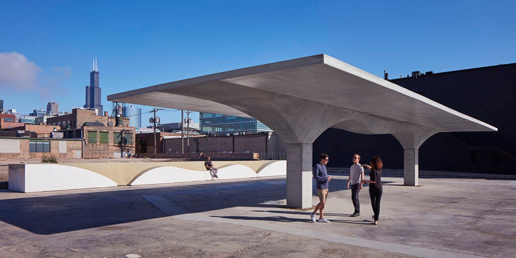 Curves and CO2 reduction coexist in Chicago’s colossal concrete installation