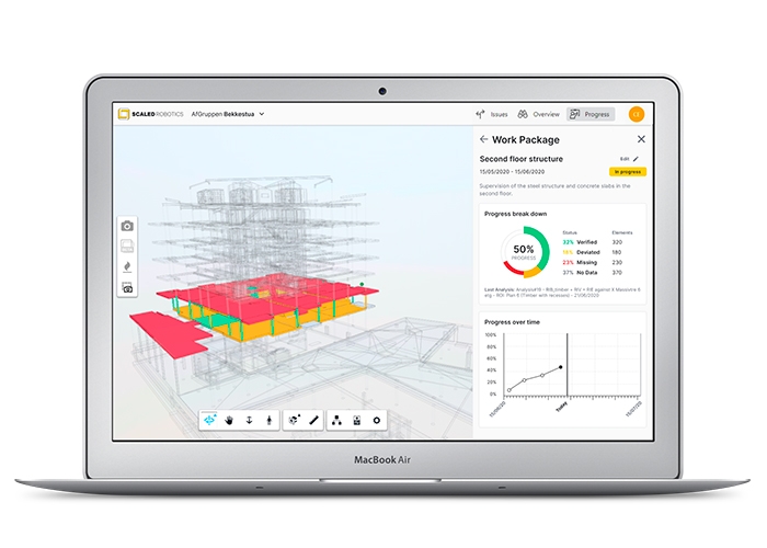 Tracking progress in this challenging outdoor environment can be difficult—especially when comparing a real building to a digital model. That lack of control increases risk and leads to costly errors in construction, which often needs to be precise to the nearest millimeter. That’s why Scaled Robotics has created tools to make project management more effortless by helping to bridge the real and digital worlds.