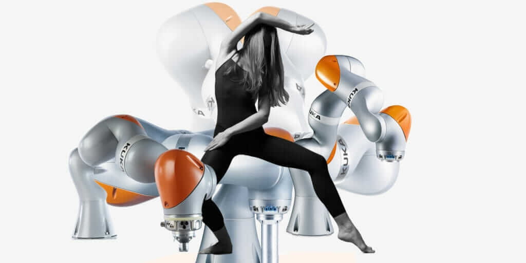 The reality, of course, is that robots are quite mundane, pedestrian tools in today’s manufacturing and engineering environments, where they work uneventfully alongside human colleagues. For example, the LBR iiwas (“Evas,” as their German developers call them) have a variety of day jobs, such as precision assembly. The model KR-6s that Larkings dances with are industrial workhorses.