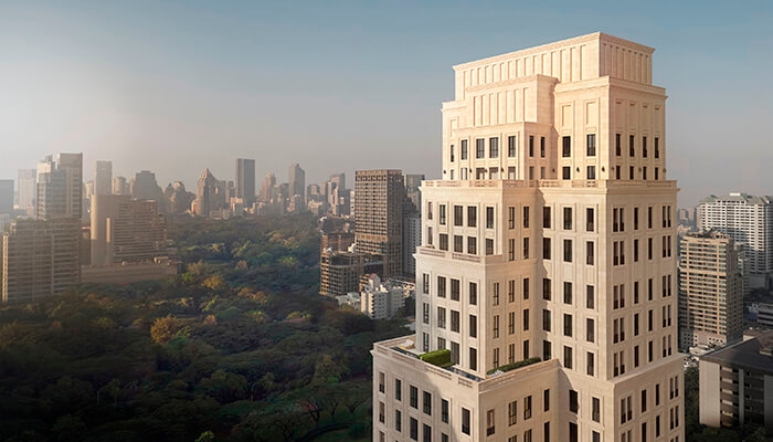 One DWP|Signature project, 98 Wireless, features 77 luxury condominiums in downtown Bangkok, styled in Ralph Lauren Home by Anne Carson. The client brief for 98 Wireless—one of the first projects of its kind in Asia—specified a New York–style apartment building. “We did the architecture, the interiors, and then we collaborated with our signature partner in New York,” Whittaker says. “And we did all of this in BIM in a single model, so it was really our start of that journey doing such a major project.”