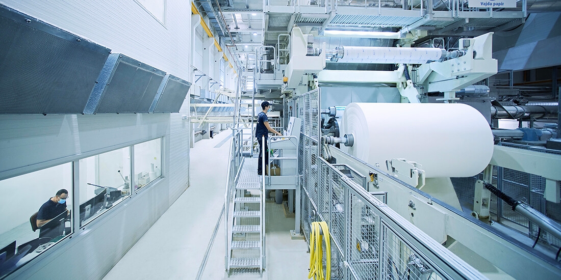 Hungarian company Vajda Papír produces about 30,000 tons of napkins, toilet paper, and paper towels for the whole of Europe every year. The firm’s sophisticated factory uses sensors and AI-optimized processes to achieve sustainable, cost-effective paper production.
