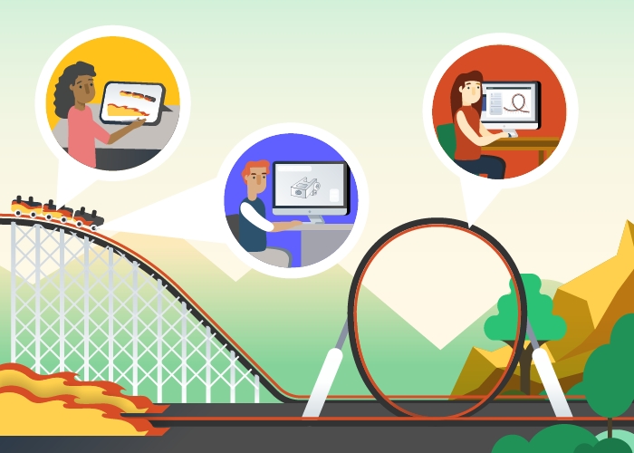 Think about designing and building a rollercoaster. Each person uses the software platform in a way that feels like one single application, even though they each experience it in their own way. The motion-design animator experiences the platform on a touchscreen, using a stylus. The data from this is connected to the mechanical engineer, who experiences the same platform in a different way, working on the track-wheel assembly in a CAD program. An electrical engineer accesses the data to lay out the ride’s electrical system. Collectively, it looks like one single software. Why is this important? It reduces cognitive breaks as these different personas go back and forth, enhancing mutual workflows on a collaborative project.
