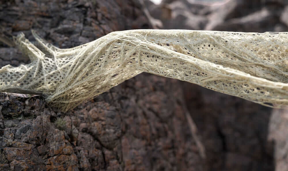 The AA.DRL projects include both real-world prototypes and computer simulations. Modeled after how ants or termites build, they’re an eerie mix of geometric precision and biomorphic evolution. The Thread uses drones to automatically arrange threads into a suspended geometric cocoon shape, seemingly the product of primitive robot wasps. An Aerial Robotic Bridge Construction computer program simulates how a system of drones could descend from the sky like a plague of locusts and cantilever out from a cliff side two biomorphic structures, which meet in the middle to become a bridge. (The prototype-printing hardware developed for this theoretical application squirted UV-light-curable resin that was cured instantly by an array of onboard lasers.)