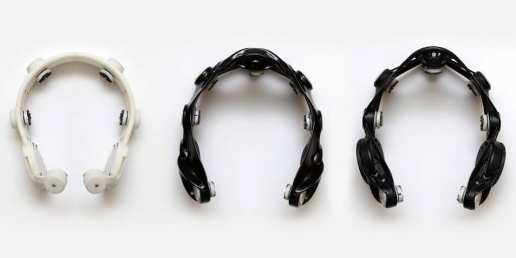 The intent was to use an additive-manufacturing process, essentially 3D printing, to minimize the cost of custom fabrication. Petric-Gray also wanted to minimize the number of moving parts used when fitting the headset to the patient, which add to the complexity and cost of manufacturing.