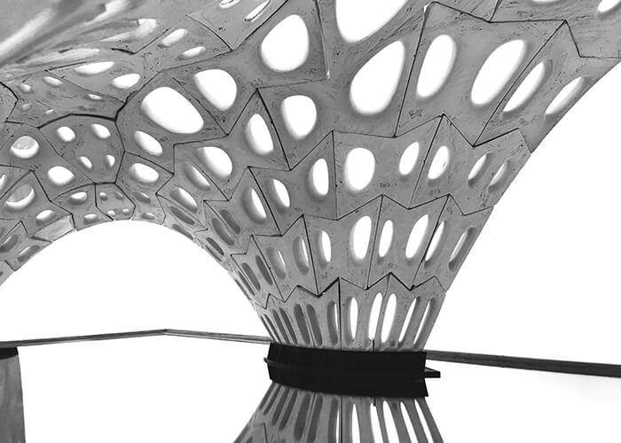 In addition to these evocative elements, perhaps the composite material’s most astounding feat is its transparency. “It really challenges what you think of as a structure because these materials like glass fiber are translucent,” says Prado, who used Autodesk PowerMill to fabricate the tower.