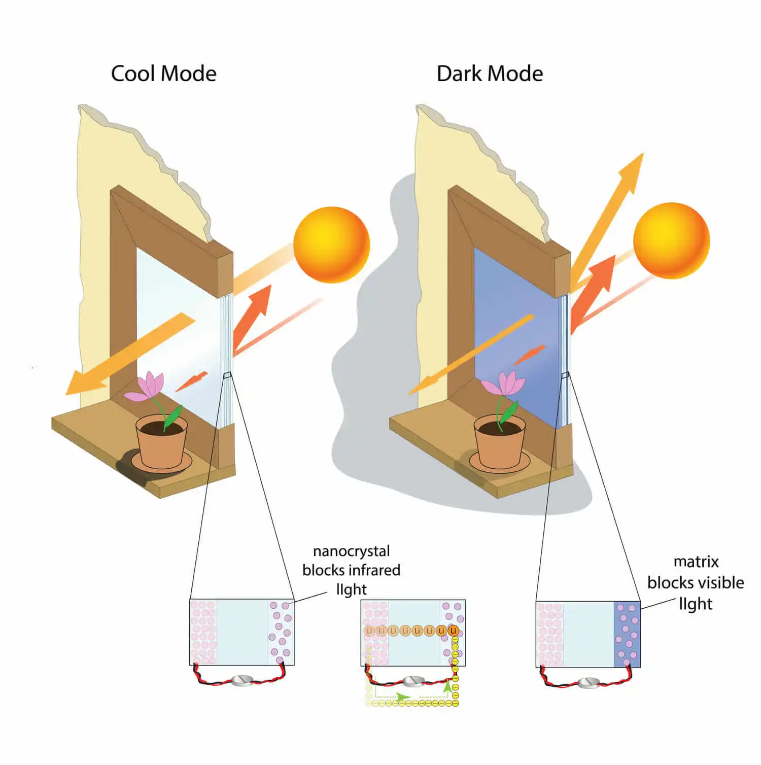 A nanocrystal, for example, is a crystalline nanoparticle having at least one dimension smaller than 100 nanometers (a nanoparticle) and composed of atoms in either a single- or poly-crystalline arrangement. Nanocrystals are much smaller than larger crystals, so how could they be used in the here and now? One example is smart windows, with California’s Heliotrope Technologies leading the smart-window charge.