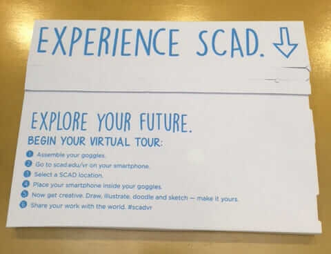 High school students and aspiring designers accepted to the Savannah College of Art and Design (SCAD) received more than just a letter in 2015; they received a white cardboard mailer that when opened, unfolded, and reassembled turned into a set of goggles—a device known as Google Cardboard, the tech giant’s low-cost way to introduce the masses to virtual reality (VR). Prospects could load a virtual-tour website on their smartphone; slip the phone into the cardboard glasses; and with this makeshift headset, take a virtual walk around one of SCAD’s four campuses.