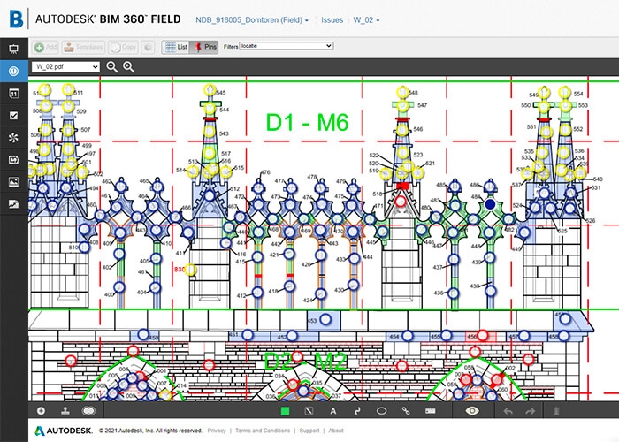 In the past, a restoration project of this scale would need more people, more budget—and, in both cases, more time. Information about restored components might have been captured manually on paper, or in a lengthy spreadsheet, with loads of data entry and uploading of individual images. With Autodesk BIM 360, Nico de Bont and the project architects were able to do a detailed assessment of the elements in need of restoration.