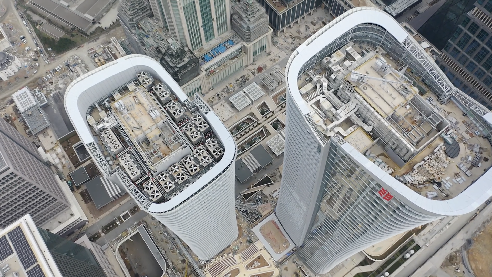 • The complex comprises two glass towers with intricate facades, extensive office and retail spaces, and a cultural and event center, achieving LEED Platinum certification through sustainable practices and materials.