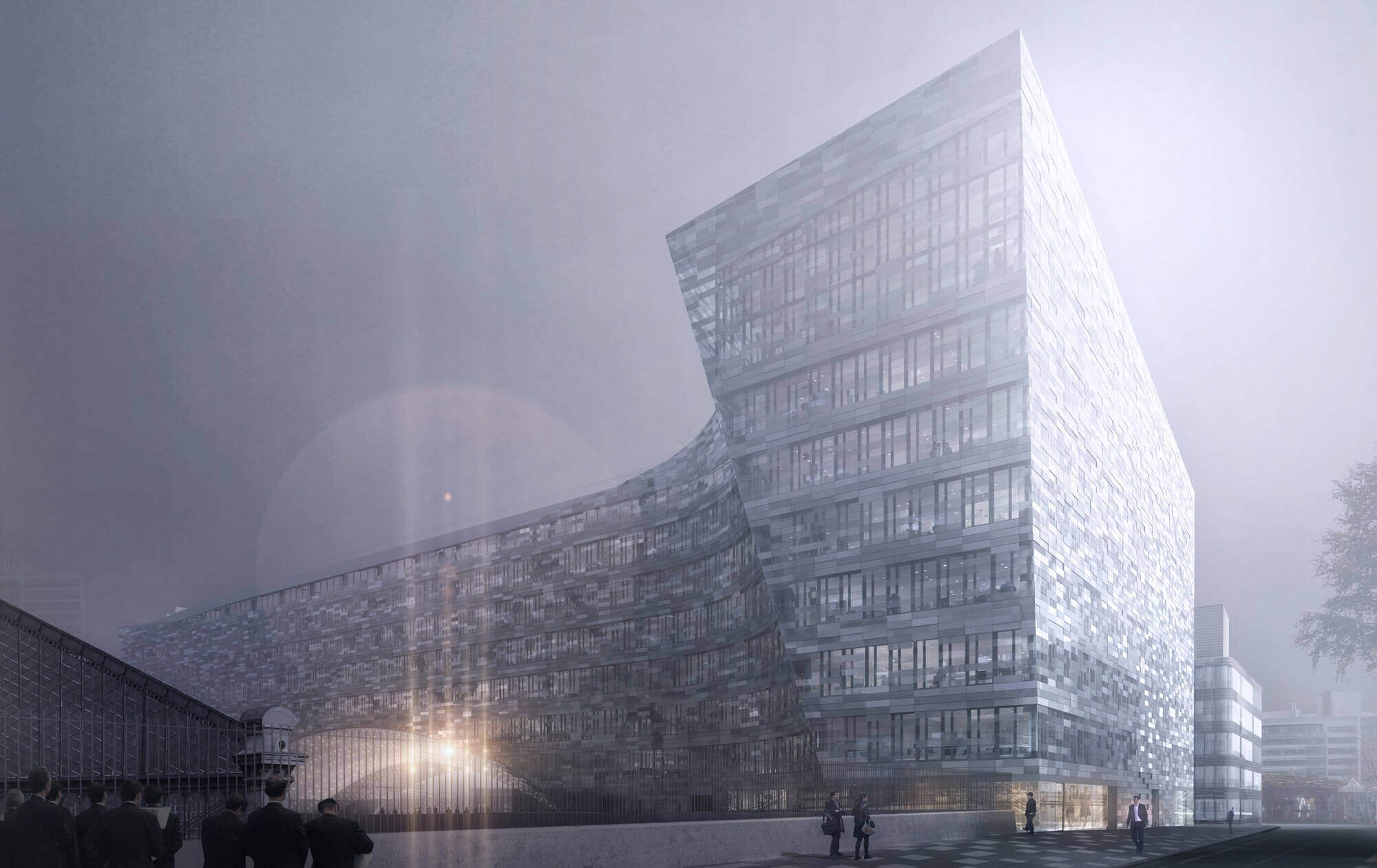 Snøhetta, a Norway-based architecture firm, won the commission for the new headquarters of Le Monde in Paris, focusing on openness and transparency in their design, which included a bridge between two towers symbolizing unity.