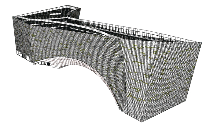 The key to achieving the desired effect was not to rely exclusively on technology or to abandon human intuition: The random computer-generated pattern was subjected to the artistic eye of one of the firm principals in a full-size section mockup on site in Paris. Kjetil Trædal Thorsen, the cofounder of Snøhetta, viewed the mockup and expressed concern that the vertical lines between panels were too strong, diminishing the random effect that the team was going for. And then it was back to the drawing table (or rather the programming table) with Vasshaug and Luca Bargagli, the Italian facade engineer. They worked together to change how the script would generate the random patterns to better align with the aesthetic intent. “So you go in and change the way the script behaves based on the input from designers. You change the parameters, execute it, and watch beauty unfold,” Vasshaug says.