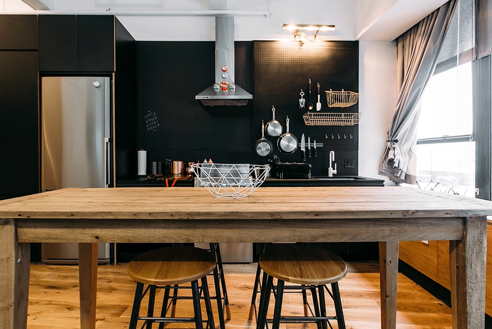 One of Kern’s biggest design challenges with WeLive was how to create furnished apartments that would encourage what he calls an “asset-light living situation” while still offering ways for residents to make their home their own. To strike this balance, he used a selection of customizable materials in strategic places that give residents a chance to color outside his lines: felt walls in bedrooms for hanging photos; pegboard in the kitchen to arrange shelving for a cookbook collection; chalkboard walls for scrawling down grocery lists; and modular, movable shelving systems. “It’s like building with building blocks within the unit,” he says.