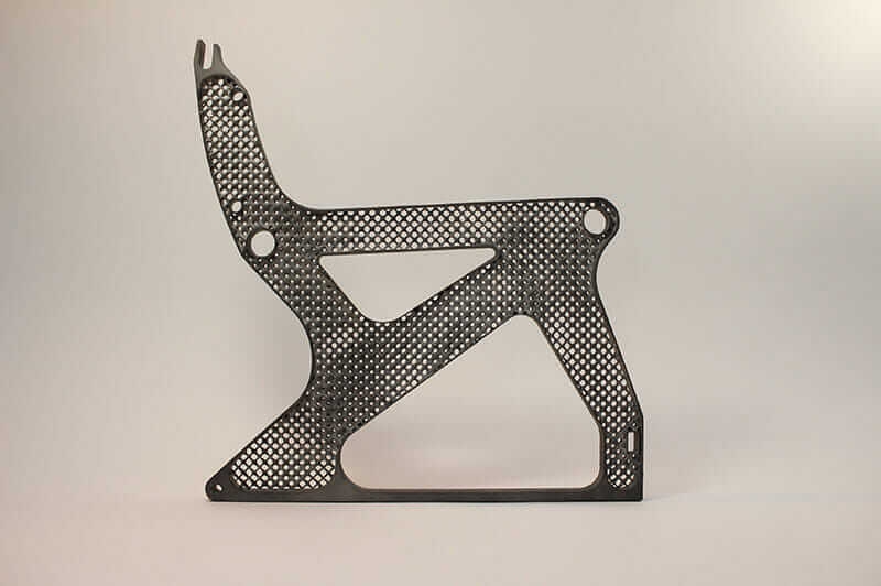 Magnesium airplane-seat frame with a latticed design developed with generative design.