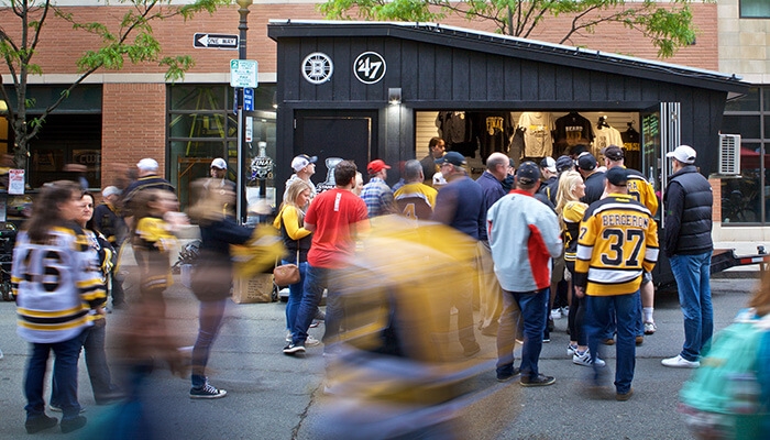 That’s a step up from drawing diagrams on the shop walls or building mockups for clients, which is how Kamm used to present his work. For one important client, the Boston Bruins hockey team, he frantically borrowed every bit of black-and-gold regalia he could find to fill out a model team store that would eventually become the retail hub for the team’s annual Fan Fest, touring every state in New England. Kamm says the team tripled the money it made before using Flexetail.