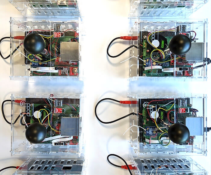 The PODD, currently in a prototype phase, is meant to be placed in close proximity to building occupants (on a desk, for example) to simulate their experiences. Each unit is powered by a rechargeable lithium-ion battery and can last two weeks on a charge. One unit within a set is the designated coordinator unit, which is connected to an Ethernet or cellular network. The other units gather data and pass it along to the coordinator, which interfaces with the system’s software and web-based display platform.