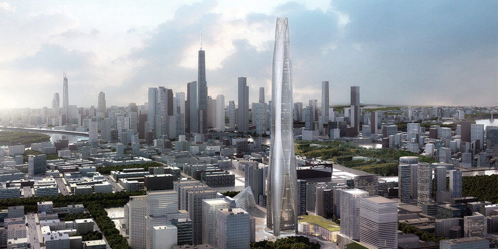 Using BIM and prefab construction, new and sustainable skyscrapers such as the Tianjin Chow Tai Fook Financial Center will act as self-contained cities with smaller and greener footprints.