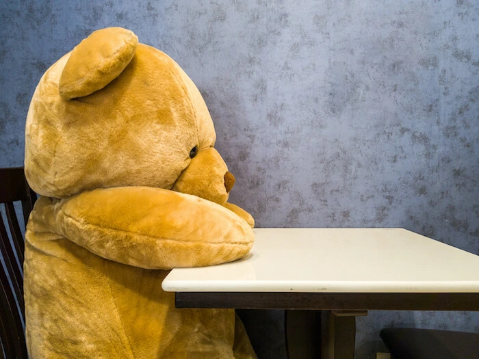 3. Disinfecting stations, eating solo, and dining with Mr. Fuzzle the Stuffed Bear