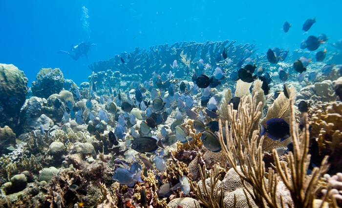 In addition to being bright and beautiful to look at, tropical coral reefs are vital to life. They make up only a small fraction of the global ecology, but they contain the most diverse ecosystem on Earth, providing home and shelter to thousands of animal and plant species. Many peoples’ livelihoods also depend heavily on fisheries, tourism, and coastal protection, which are all provided by healthy coral reefs.
