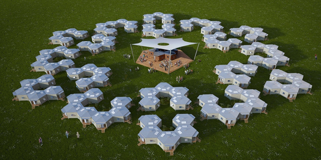 Architects for Society is a 14-member nonprofit comprising architects from eight countries. When the team discovered that the average stay in a refugee camp was 17 years, with many people living in makeshift dwellings such as airplane hangars, it wanted to create a more dignified option. It designed the Hex House, a small, hexagon-shape house that is rapidly deployable and comes with two bedrooms, bathroom, porch, kitchen, and common areas for shelter with privacy. Multiple Hex Houses can be connected to accommodate large families and offer a sense of community.