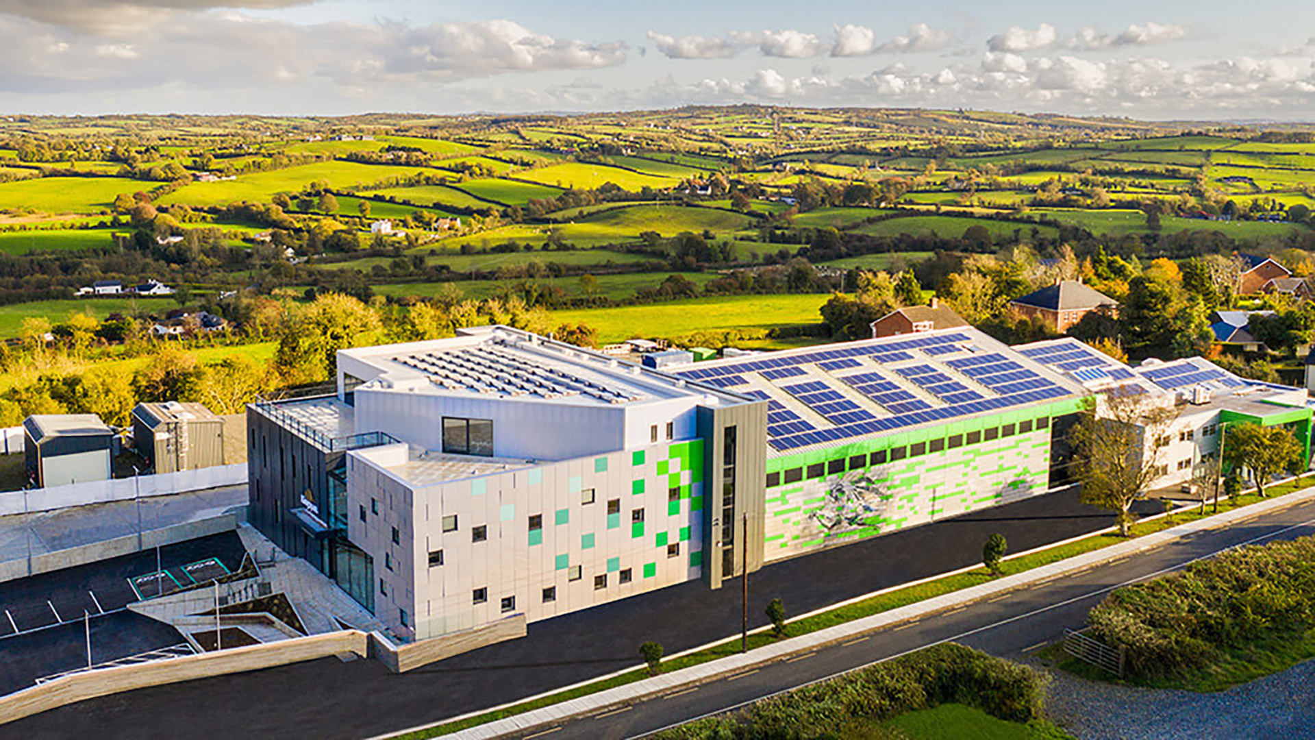 The building contains sensors that enable Kingspan engineers to measure energy consumption and the efficacy of different approaches to natural lighting, rainwater capture and disposal, solar panels, and other sustainable technologies.