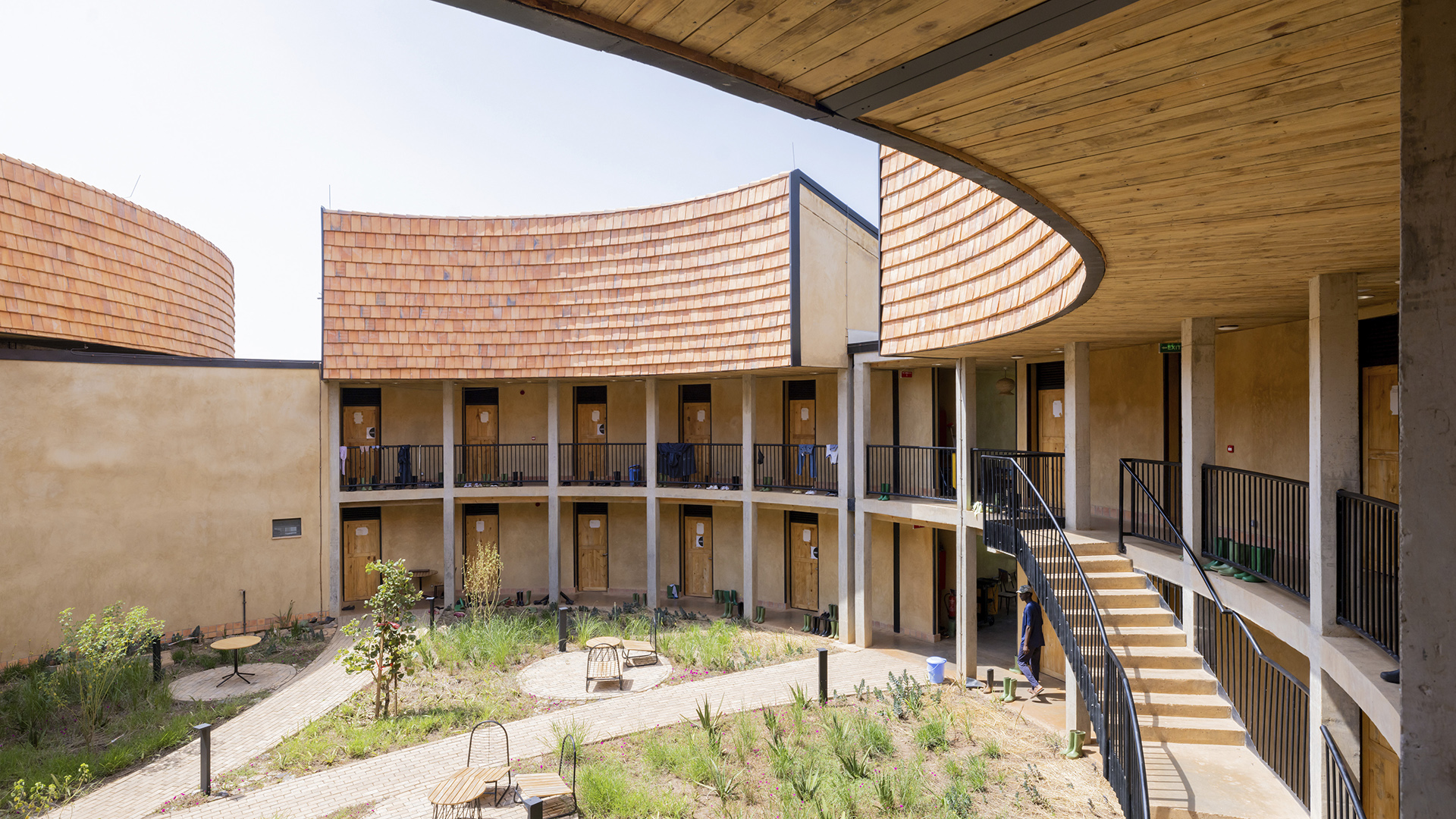 The $75 million campus, located in the rural community of Karama, was designed and built by MASS Design Group. During the first phase, MASS built infrastructure on the remote site, including water, electricity, and an access road. “The whole village became like a small city,” says architect Noella Nibakuze, a design director working at MASS’s Kigali, Rwanda, studio and design team lead for the RICA project. “You could see economic activities picking up immediately just because of the road and the lights—people were excited to be out after 6 p.m. and have the lights on.”