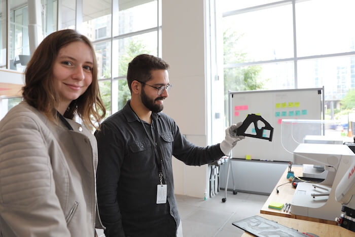 The team built several concrete forms in the structural lab at the University of Windsor, attached them to hydraulic frameworks to apply pressure, and applied a digital image correlation (DIC) system using cameras to record the tests, which made it possible to analyze the strain and stresses under certain conditions of force later. They then went back to the generative-design algorithm to come up with new lines of code in order to further improve the relationship between structural behavior and the material used for the next batch of elements.