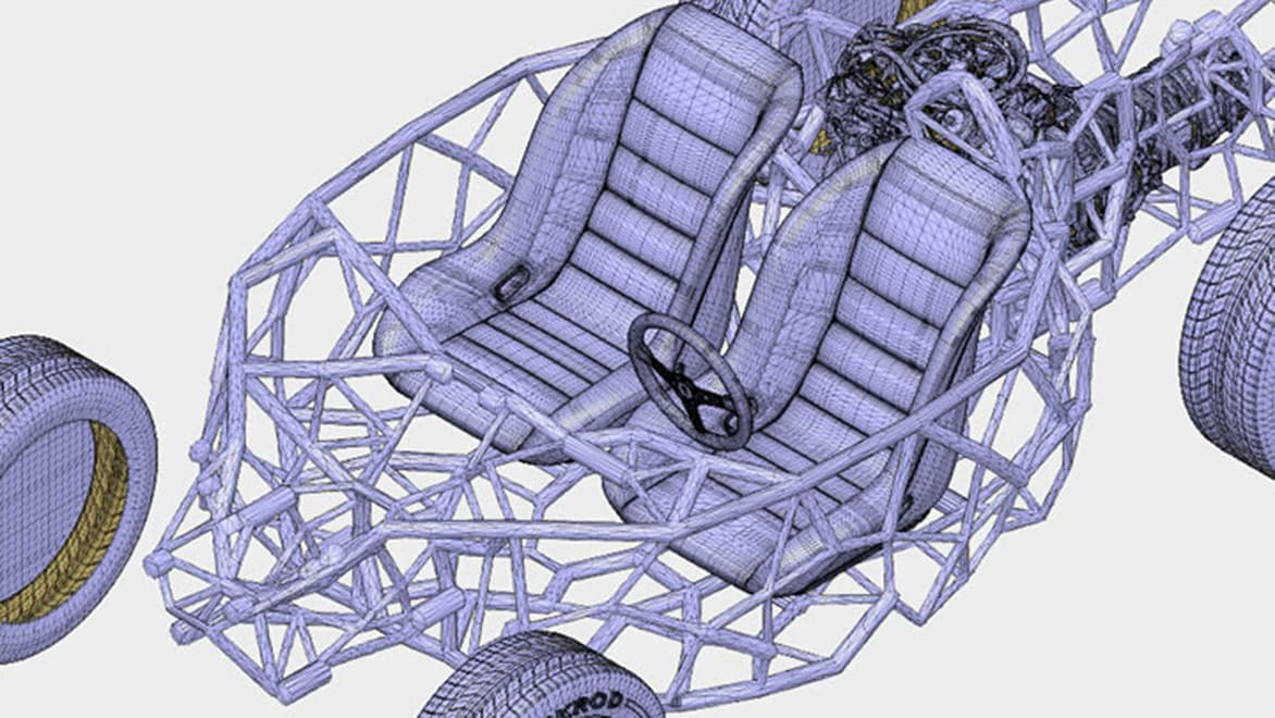 Pour mener à bien la conception du premier modèle, tout est d’abord parti du design d’un châssis pour voiture de course. Hack Rod, en partenariat avec Autodesk, a donc numérisé en 3D ce châssis réalisé à la main, à partir d’un modèle ayant fait ses preuves, et a chargé le résultat sur le cloud. Ensuite, le véhicule a été équipé d’appareils de mesure puis testé dans le désert californien des Mojaves, afin d’identifier les zones de stress pour la structure. Le pilote a aussi été équipé de capteurs afin d’observer son activité cérébrale. Et en parallèle, un drone a permis de collecter des données de modélisation du terrain. Cette masse d’informations concernant le conducteur, la structure du véhicule et les forces qu’il subit a ensuite été chargée sur Project Dreamcatcher.