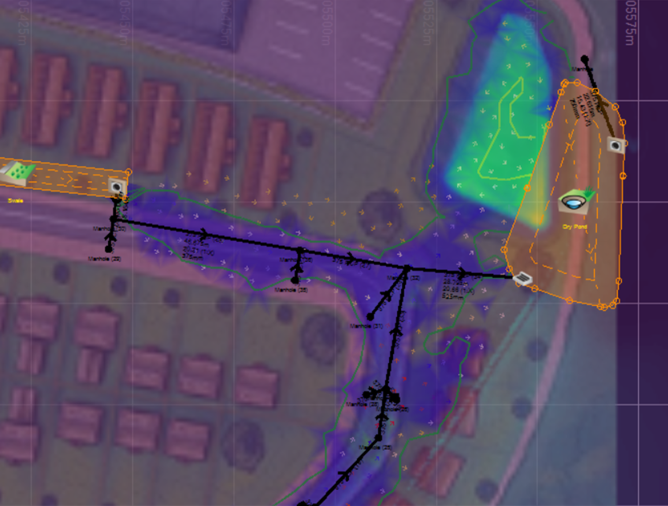 Drainage designers need full visibility of a site’s flood risks for accurate planning. Our Machine Learning Deluge tool, as part of Autodesk's InfoDrainage, instantly predicts channeling and ponding while highlighting where stormwater controls will have the most impact.