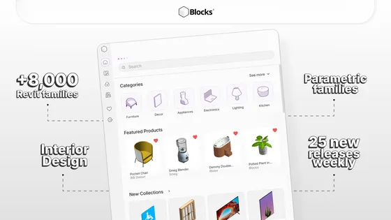 Unlike external windows or web overlays, Blocks works inside Revit’s interface, allowing users to browse, preview, and insert families directly into their projects without leaving the modeling environment.
