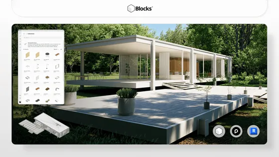 The iconic Farnsworth House by Mies van der Rohe was recreated entirely in Autodesk Revit using Blocks families. This architectural study demonstrates how realistic and detailed projects can be built with Blocks. The full Revit model is available for free download on the Blocks website.