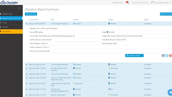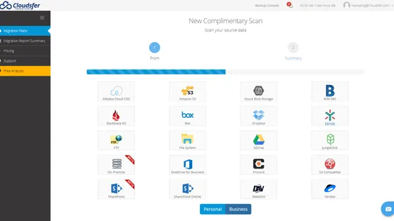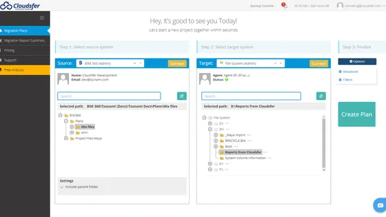 Cloudsfer supports migrations and backups either from the cloud and from on premise systems into any cloud and even to your local environment (file system). With Cloudsfer, you own your data, we do not store it and all communications between the systems are encrypted.