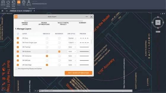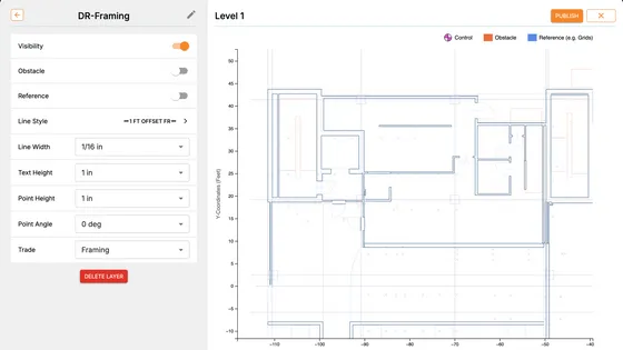 Dusty Robotics is the best solution for automated construction layout, with every capability needed on the jobsite. * 10x Faster Layout. Lay out 10,000 to 15,000 square feet per day with one person. * Accuracy, Everywhere. Get up to 1/16” accuracy at 600 DPI and print as close as 1 ¾” from any obstacle. * Native Model Coordination. Coordinate BIM models in one place with native Autodesk Revit and AutoCAD integrations. * Your Model, Visualized. Print multiple trades’ layouts at once. Owners see all the layout before construction starts.