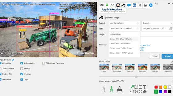 EarthCam’s integration allows users to merge high-quality, real-time construction camera imagery embedded with jobsite data, with the Autodesk Build platform. Create intelligent perspectives of your jobsite with live and saved images or 360° VR content.