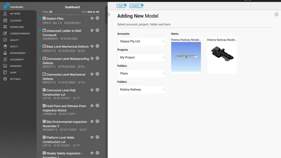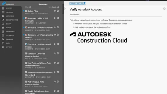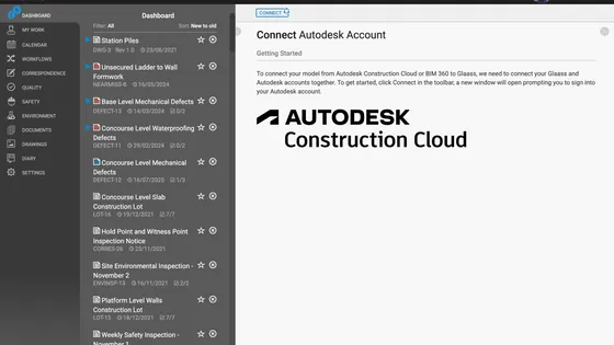 Autodesk BIM360 and Autodesk Construction Cloud users can connect their accounts to Glaass to integrate their IFC, RVT, and NWD 3D BIM models to their Glaass Pro project. This allows the following functionality: