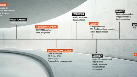 Overtaking a Revit model, splitting walls and floors, creation of Revit reinforcement and different shop drawings - Revit Precast supports the whole workflow in a precast factory. The elements can automatically be produced trough CAM interface. Factory planning tools and ERP systems are integrated.